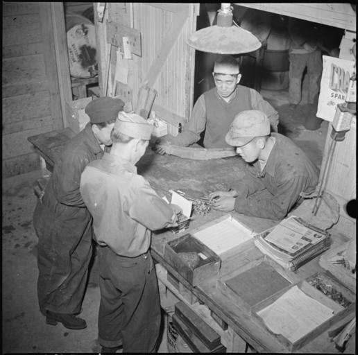 | Keywords: Tule Lake Relocation Center, Newell, California. Mechanics check parts and tools from the tool room . . . - NARA - 536733.jpg Scope and content The full caption for this photograph reads Tule Lake Relocation Center Newell California Mechanics check parts and tools from the tool room in the garage at this Relocation Center All repair work on cars trucks tractors and other motor vehicles is done by evacuee mechanics General notes 536733 Local identifier 210-G-A971 Department of the Interior War Relocation Authority 02/16/1944 - 06/30/1946 NARA-Author Stewart Francis War Relocation Authority photographer Photographer 8464475 <br /> Still Picture Records Section Special Media Archives Services Division NWCS-S National Archives at College Park 8601 Adelphi Road College Park MD 20740-6001 1943-01-30 Record group Record Group 210 Records of the War Relocation Authority 1941 - 1989 Record group ARC 537 Central Photographic File of the War Relocation Authority compiled 1942 - 1945 Series ARC 536000 File unit File unit ARC Variant control numbers NAIL Control Number NWDNS-210-G-A971 Other versions <gallery> File Tule_Lake_Relocation_Center _Newell _California _Mechanics_check_parts_and_tools_from_the_tool_room_ _ _ _-_NARA_-_536733 tif tif File Tule_Lake_Relocation_Center _Newell _California _Mechanics_check_parts_and_tools_from_the_tool_room_ _ _ _-_NARA_-_536733 jpg jpg </gallery> NARA-cooperation PD-USGov Tule Lake War Relocation Center |