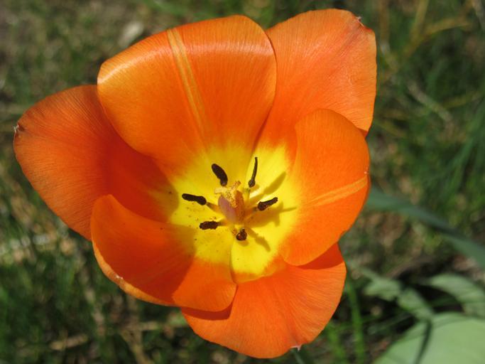Keywords: tulip blossom bloom petals stamp pollen close flower spring yellow orange colorful triangle