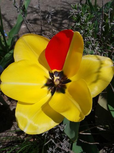 Keywords: tulip blossom bloom yellow red spring flower close early bloomer