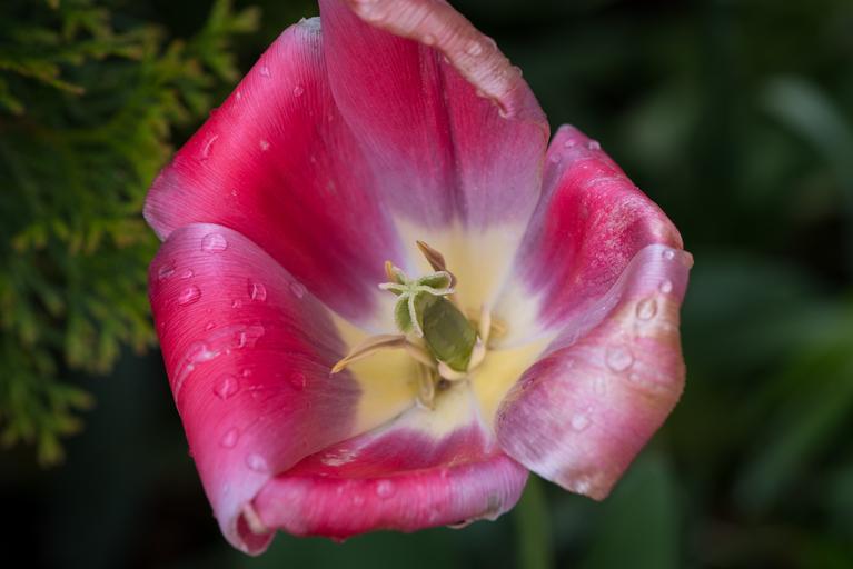 Keywords: tulip flower blossom bloom petals pistil wet raindrop drop of water nature plant close garden spring