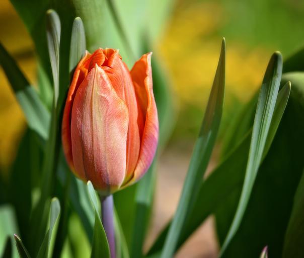 Keywords: tulip orange blossom bloom schnittblume spring flower spring garden nature close
