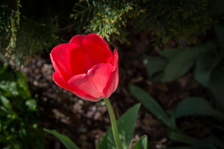 Keywords: tulip red red tulip flower red flower blossom bloom petals garden flower garden plant nature spring spring flower schnittblume sunlight close