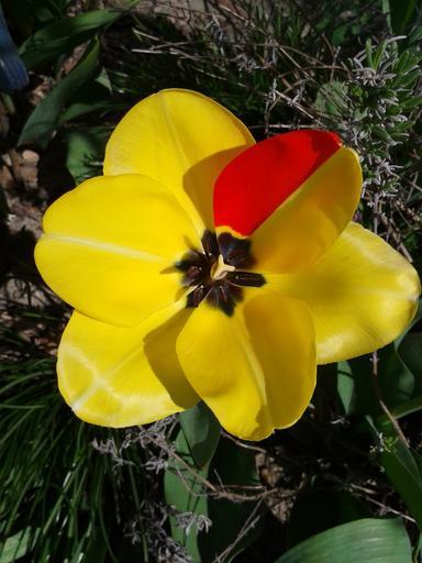 Keywords: tulip spring yellow color flower red blossom bloom blossom