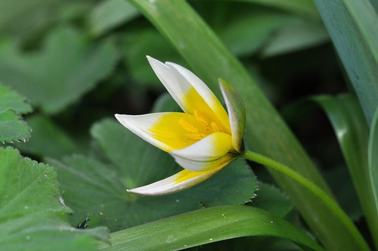 Keywords: tulip star tulip flower blossom bloom yellow-white plant spring garden spring flower nature close