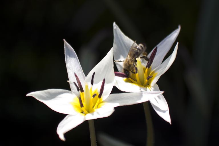 Keywords: tulip white bee stamp stamens lily family spring nature flower schnittblume blossom bloom plant flora flower bracts garden tulipa turkestanica pamir