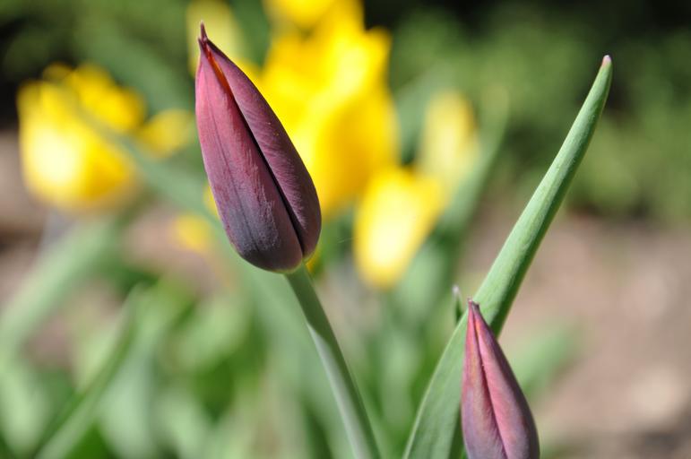 Keywords: tulip yellow purple flower floral blossom petal bloom nature spring