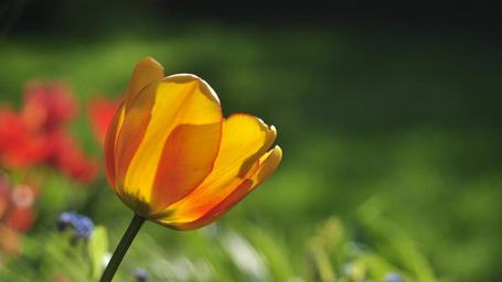 Keywords: tulip yellow red spring early bloomer green garden color yellow tulips red yellow close bokeh