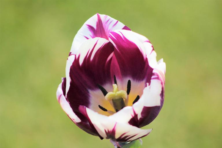 Keywords: tulips flowers nature spring blossom bloom plant bi color garden purple white flowering stems