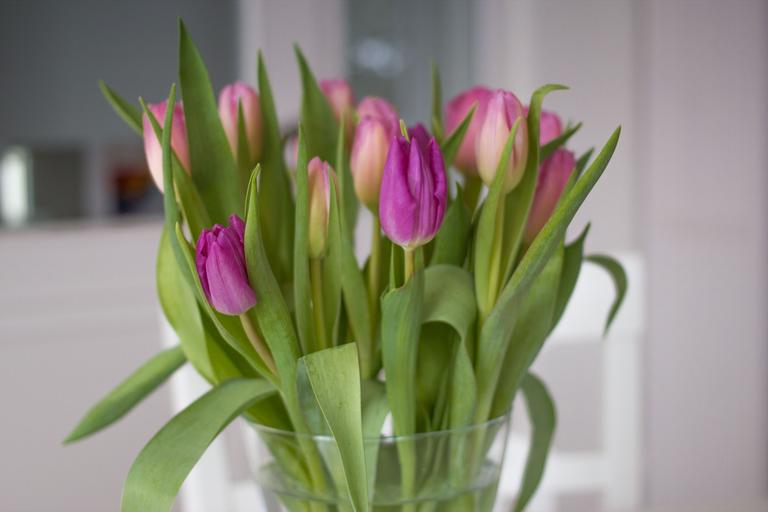 Keywords: tulips flowers spring pink violet bloom tulip bouquet vase colorful romantic valentine's day