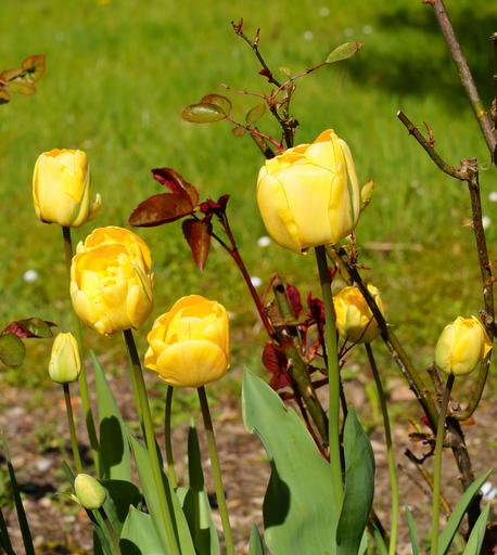 Keywords: tulips flowers spring plant close yellow early bloomer