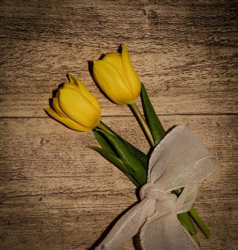Keywords: tulips flowers yellow flowers cut flowers spring flowers loop wood deco close