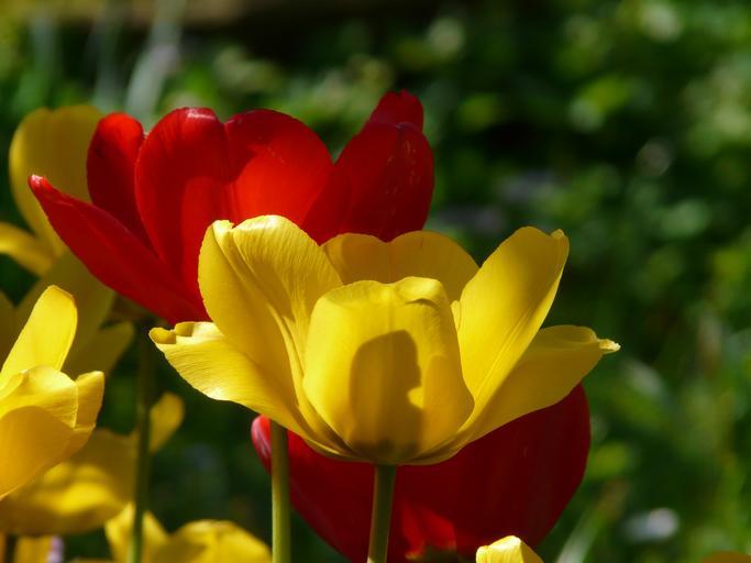 Keywords: tulips red yellow back light beautiful tulpenbluete flowers colorful color spring bloom tulipa ornamental plant garden park blossom bloom garden cups nature blossom blossomed floral colourful flora flower fresh plant glück happiness idyllic landscape sunlight sunny day day tulip outdoor floristry