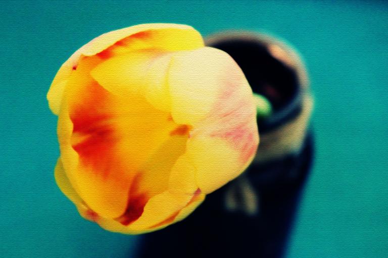 Keywords: tulips sun flowers flora yellow hell bloom schnittblume mood bouquet give floristry joy of life give away cheerful decoration deco close decorative effect canvas glass vase
