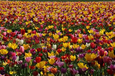 Keywords: tulips tulip field flower field garden bright bloom blossom yellow red blooming