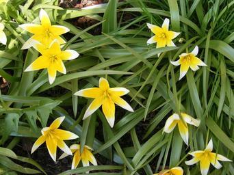 Keywords: tulips yellow green leaves plants flower nature spring coloring