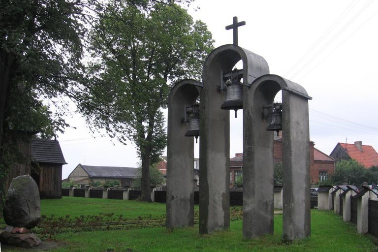 Keywords: Tum-dzwony.przy.kosciolku.sw.Mikolaja.jpg Tum near Łęczyca Poland the bells of St Nicolas church left - memorial stone of St Adalbert oak-tree left in background - St Nicolas church Julo Saint Nicholas church in Tum Belfries in Łódź Voivodeship |