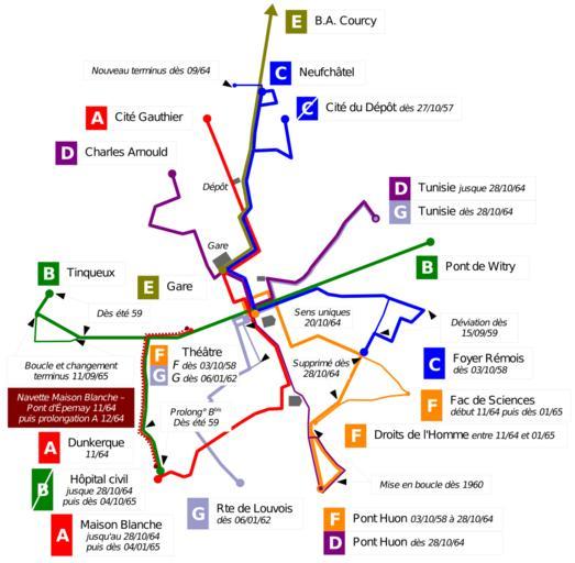 Keywords: Tur1962.svg Réseau des Transports Urbains de Reims en 1962 et modifications depuis 1956 jusqu'en 1966 Buses network in Reims in year 1962 and improvements from 1956 till 1966 Plus d'un siècle de transports en commun à Reims M Chenu et M Jailliard adapté par moi-même / adapted by myself 2007-11-18 Daiima <br /><div align center > toccolours width 75 cellpadding 7 +Les évolutions du réseau T U R de 1873 à 2000<br />Evolutions of the bus network in Reims from 1873 to 2000 ccccff align center Carte précédente<br />Previous map ccccff align center Carte actuelle<br />This map ccccff align center Carte suivante<br />Next map - FEFF7F align center Image Tur1952 svg FEFF7F align center Image Tur1962 svg FEFF7F align center Image Tur1972 svg - E6FF7F align center 1944 > 1952 > 1956 E6FF7F align center 1956 > 1962 > 1966 E6FF7F align center 1966 > 1972 > 1972 </div> Historical public transport maps of Reims |