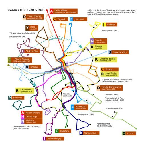 Keywords: Tur1982.svg Réseau des Transports Urbains de Reims en 1982 et modifications depuis 1978 et jusqu'en 1988 Buses network in Reims in year 1982 and improvements years 1978 till 1988 Plus d'un siècle de transports en commun à Reims M Chenu et M Jailliard adapté par moi-même/ adapted by myself 2007-11-15 Daiima <br /><div align center > toccolours width 75 cellpadding 7 +Les évolutions du réseau T U R de 1873 à 2000<br />Evolutions of the bus network in Reims from 1873 to 2000 ccccff align center Carte précédente<br />Previous map ccccff align center Carte actuelle<br />This map ccccff align center Carte suivante<br />Next map - FEFF7F align center Image Tur1976 svg FEFF7F align center Image Tur1982 svg FEFF7F align center Image Tur1994 svg - E6FF7F align center 1973 > 1976 > 1978 E6FF7F align center 1978 > 1982 > 1986 E6FF7F align center 1994 </div> Historical public transport maps of Reims |