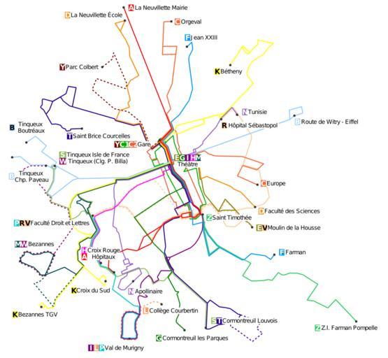 Keywords: Tur2007.svg en Schematic map of Reims' TUR buses network fr Plan schématique du réseau des Transports Urbains de Reims en Own realization based on the official map fr Œuvre personnelle basée sur le plan officiel 2007-11-22 user daiima / fr user daiima Public Domain Image ReseauTUR gif <br /><div align center > toccolours width 75 cellpadding 7 +Les évolutions du réseau T U R de 1873 à 2010<br />Evolutions of the bus network in Reims from 1873 to 2010 ccccff align center Carte précédente<br />Previous map ccccff align center Carte actuelle<br />This map ccccff align center Carte suivante<br />Next map - FEFF7F align center Image Tur1994 svg FEFF7F align center Image Tur2007 svg FEFF7F align center Image Tur2010 svg - E6FF7F align center 1994 E6FF7F align center 2007 E6FF7F align center 2010 </div> Public transport maps of Reims |