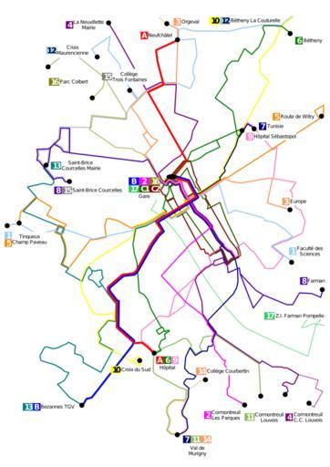 Keywords: Tur2010.svg en Schematic map of planned Reims' TUR tramways and buses network for 2010 fr Plan schématique du réseau envisagé pour les Transports Urbains de Reims dès fin 2010 http //www tramwaydereims fr/_V2/pdf/reseau_tc pdf 2007-11-23 user daiima / fr user daiima Public Domain <br /><div align center > toccolours width 75 cellpadding 7 +Les évolutions du réseau T U R de 1873 à 2010<br />Evolutions of the bus network in Reims from 1873 to 2010 ccccff align center Carte précédente<br />Previous map ccccff align center Carte actuelle<br />This map ccccff align center Carte suivante<br />Next map - FEFF7F align center Image Tur2007 svg<br /> Image ReseauTUR gif FEFF7F align center Image Tur2010 svg FEFF7F align center - E6FF7F align center 2007 E6FF7F align center 2010 E6FF7F align center Dernière - Last </div> Public transport maps of Reims |