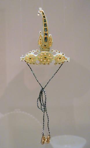 Keywords: Turban ornament, North India, Delhi or Jaipur, 18th-19th century, antigorite, gold, pearls, glass - Ethnological Museum, Berlin - DSC01519.JPG en Exhibit in the Ethnological Museum Berlin Germany Photography was permitted in the museum without restriction 2014-11-11 09 09 52 own Daderot other versions cc-zero Art of India in the Ethnological Museum Berlin Uploaded with UploadWizard |