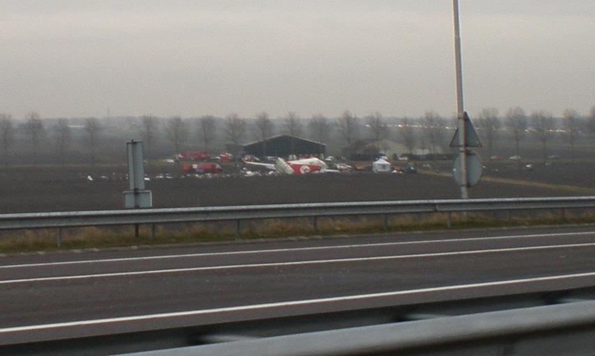 Keywords: Turkish Airlines Flight 1951 (1b).JPG en Turkish Airlines Flight 1951 was a scheduled flight from Istanbul Turkey to Amsterdam Netherlands The Boeing 737-800 aircraft broke up into three parts due to the crash into a field outside Amsterdam's Schiphol Airport at 9 31 UTC 10 31 CET on 25 February 2009 Although the wreck did not catch fire an official press conference confirmed the death of nine people and the injury of eighty The crash site is located approximately 3 kilometres 1 9 mi north of the Polderbaan runway 18R-36L just beside the A9 motorway The cause of the crash has not yet been determined de Turkish Airlines Flug 1951 war ein Linienflug vom Atatürk-Flughafen in Istanbul nach Amsterdam Am 25 Februar 2009 gegen 09 40 Uhr UTC stürzte das Flugzeug beim Landeanflug auf den Flughafen Schiphol ab Die Absturzstelle liegt etwa drei Kilometer nördlich des Aufsetzpunktes der Landebahn 18R unweit des Autobahnkreuzes Rottepolderplein der A9 mit der A200 westlich von Zwanenburg 12 Das Flugzeug zerbrach in drei Teile fing aber kein Feuer Laut offizieller Pressekonferenz gab es 9 Tote und 50 Verletzte fr Le vol 1951 Turkish Airlines est un vol régulier de la compagnie aérienne nationale Turkish Airlines entre Istambul et Amsterdam Le Boeing 737-800 s'est écrasé à proximité de l'aéroport d'Amsterdam-Schiphol le 25 février 2009 faisant 9 morts et 50 blessés nl Turkish Airlines-vlucht 1951 was een vlucht van Luchthaven Istanbul Atatürk naar Schiphol Het vliegtuig een Boeing 737-800 gebouwd in 2002 van de Turkse maatschappij Turkish Airlines stortte op 25 februari 2009 rond 10 31 uur neer in een weiland bij Schiphol ten noorden van de Polderbaan nabij autosnelweg A9 own Janericloebe 2009-02-25 52 3767 4 712877 Turkish Airlines Flight 1951 |