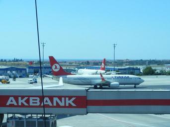 Keywords: Turkishairlines.jpg en A Turkish Airlines plane at the Ataturk Airport own Spiderone 2009-07-29 Atatürk International Airport Turkish Airlines aircraft at Atatürk International Airport Akbank