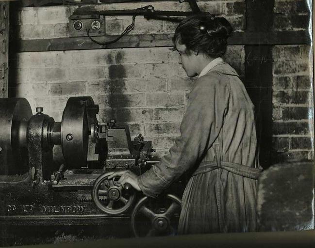 | Keywords: ww1 firstworldwar war worlife1915 parsons munitions women female labourers work factory heaton newcastle flanges turning 1914-18 191418 women of the war womenofthewar world war one worldwarone wartime black and white photograph blackandwhitephotograph digital image digitalimage archives industry industrial heritage industrialheritage parsons’ ‘women labourers’ parsons’‘womenlabourers’ women labourers womenlabourers production shields road shieldsroad works on shields road worksonshieldsroad charles parsons charlesparsons engineering inventor steam turbine steamturbine rachel parsons rachelparsons ministry of munitions ministryofmunitions war effort wareffort worker cog wheel wall darkness equipment components bolt wire bar cloak belt fabric crease working attentive woman hair letters identification label mark timber grain blur blouse ribbon shine fascinating interesting unusual compelling north east of england northeastofengland united kingdom unitedkingdom standing precision cambridge workforce economy photo border black and white These images belong to the Parsons’ ‘Women Labourers’ photograph album, taken at Parsons’ Works on Shields Road during the First World War. (TWAM ref: 2402) The factory was founded by engineer Charles Parsons, best known for his invention of the steam turbine. In 1914, with the outbreak of war, Parsons’ daughter Rachel, one of the first three women to study engineering at Cambridge, replaced her brother on the board of directors, and took on a role in the training department of the Ministry of Munitions, supporting the increasing amount of women taking on jobs in industry to support the war effort. More information about Rachel Parsons and Parsons’ Works can be found in Great North Greats a guest post by David Wright. (copyright) We’re happy for you to share these digital images within the spirit of The Commons. Please cite 'Tyne & Wear Archives & Museums' when reusing. Certain restrictions on high quality reproductions and commercial use of the original physical version apply though; if you're unsure please email archives@twmuseums.org.uk These images belong to the Parsons’ ‘Women Labourers’ photograph album, taken at Parsons’ Works on Shields Road during the First World War. (TWAM ref: 2402) The factory was founded by engineer Charles Parsons, best known for his invention of the steam turbine. In 1914, with the outbreak of war, Parsons’ daughter Rachel, one of the first three women to study engineering at Cambridge, replaced her brother on the board of directors, and took on a role in the training department of the Ministry of Munitions, supporting the increasing amount of women taking on jobs in industry to support the war effort. More information about Rachel Parsons and Parsons’ Works can be found in Great North Greats a guest post by David Wright. (copyright) We’re happy for you to share these digital images within the spirit of The Commons. Please cite 'Tyne & Wear Archives & Museums' when reusing. Certain restrictions on high quality reproductions and commercial use of the original physical version apply though; if you're unsure please email archives@twmuseums.org.uk |