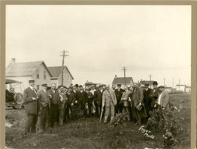 Keywords: canadian car & foundry co. limited canadiancarfoundrycolimited mcnaughton alexander mcnaughton alexandermcnaughton graham george alexander graham georgealexandergraham stewart dean young samuel crawford young samuelcrawfordyoung industry construction monochrome outdoor photo border Turning of the first sod for the construction of Canadian Car & Foundry, July 17, 1912. Based on an accompanying handwritten list, the individuals in this photograph are, from left to right: Alexander McNaughton, City Clerk of Fort William Mr Walsh of the Manufacturer's Association G.A. Graham, Mayor of Fort William Mr Dewey of Winnipeg Dr A. D. Stewart, Alderman R.J. Byrnes, Barrister Dr. T.E. Dean, Alderman A.L. Bond, CPR Solicitor, of Winnipeg J. Horne, Esq Ross Shaw, Engineer for Canadian Car & Foundry W. B. Lannigan, Assistant General Traffic Manager, CPR W. Hogarth, President, Mount McKay and Kakabeka Falls Railway W.W. Butler, Vice President, Canadian Car & Foundry Company, Montreal D'Arcy Scott, Vice Chairman, Board of Railway Commission for Canada, Ottawa H. H. Hansard, Grand Trunk Pacific Solicitor, Winnipeg Dr. Mills, Member of Board of Railway Commission for Canada, Ottawa Mr Donaldson, Vice President and General Manager, Grand Trunk Pacific, Winnipeg Mr Cowan, Representative of the Alberta or Saskatchewan Government Mr Ditchfield, S. C. Young, former Mayor of Fort William Dr. J.E. Martin, Fort William H.A.K. Dreiry [?], Chief Engineer for Board of Railway Commission F.W. Young, Manager of Lake Clearance Association. Accession 1991-6 #129 This photograph is in the public domain as all copyright has expired. The photograph is attributed to the Fryer photo studio. For more information about Thunder Bay's history, visit www.thunderbay.ca/archives Turning of the first sod for the construction of Canadian Car & Foundry, July 17, 1912. Based on an accompanying handwritten list, the individuals in this photograph are, from left to right: Alexander McNaughton, City Clerk of Fort William Mr Walsh of the Manufacturer's Association G.A. Graham, Mayor of Fort William Mr Dewey of Winnipeg Dr A. D. Stewart, Alderman R.J. Byrnes, Barrister Dr. T.E. Dean, Alderman A.L. Bond, CPR Solicitor, of Winnipeg J. Horne, Esq Ross Shaw, Engineer for Canadian Car & Foundry W. B. Lannigan, Assistant General Traffic Manager, CPR W. Hogarth, President, Mount McKay and Kakabeka Falls Railway W.W. Butler, Vice President, Canadian Car & Foundry Company, Montreal D'Arcy Scott, Vice Chairman, Board of Railway Commission for Canada, Ottawa H. H. Hansard, Grand Trunk Pacific Solicitor, Winnipeg Dr. Mills, Member of Board of Railway Commission for Canada, Ottawa Mr Donaldson, Vice President and General Manager, Grand Trunk Pacific, Winnipeg Mr Cowan, Representative of the Alberta or Saskatchewan Government Mr Ditchfield, S. C. Young, former Mayor of Fort William Dr. J.E. Martin, Fort William H.A.K. Dreiry [?], Chief Engineer for Board of Railway Commission F.W. Young, Manager of Lake Clearance Association. Accession 1991-6 #129 This photograph is in the public domain as all copyright has expired. The photograph is attributed to the Fryer photo studio. For more information about Thunder Bay's history, visit www.thunderbay.ca/archives |