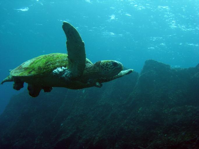 Keywords: turtle sea green reptile swimming nature wildlife ocean water wild flipper shell