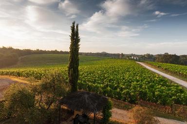 Keywords: tuscany grape field nature green outdoors landscape sky morning evening tree wine italy clouds wide farm