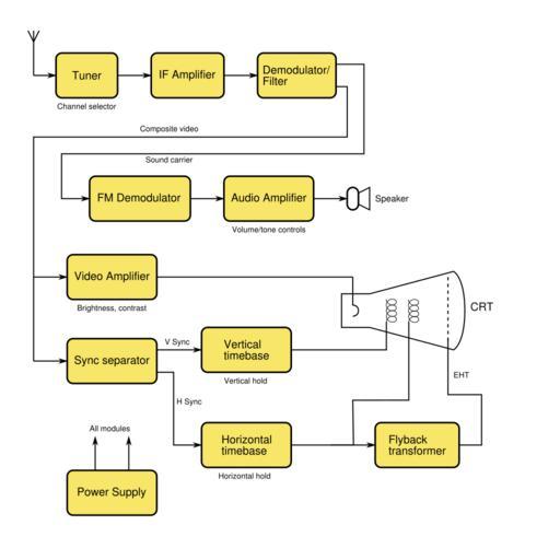 Keywords: TV-block-diagram.svg Block diagram of monochrome analogue television receiver Inkscape on my Mac date Ian Harvey Block diagrams Television receivers