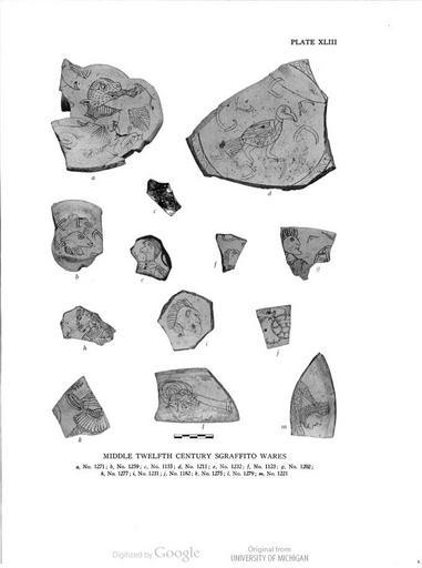 Keywords: Twelfth Century Sgraffito Wares.JPG en Twelfth Century Sgraffito Wares k No 1275 shows a Greek Warrior from Corinth Greece wearing pleated fustanella <ref name Morgan Charles Hill 1942 132-3 > cite book Morgan Charles Hill The Byzantine pottery Cambridge Mass Published for the American school of classical studies at Athens Harvard university press 1942 132-3 36957616 The mace-bearer of No 1275 is clad in chain mail with a heavy pleated fustanella worn about his hips The importance of this latter piece is very considerable for the details of the costume often shown on Incised-Sgraffito figures are very clear and make it certain that the fustanella exists as an independent garment and is not an elaboration of the lower part of a tunic It is consequently demonstrable that this characteristic garment of latter-day Greece was in common use as early as the twelfth century in Greek lands </ref> In The Byzantine pottery by Charles H Morgan II pp xliii 1942 http //babel hathitrust org/cgi/pt id mdp 39015018611767;view image;seq 445;num xliii;q1 no 201275;start 1;size 10;page search HathiTrust Digital Library Morgan Charles Hill PD-old References reflist Sgraffito |