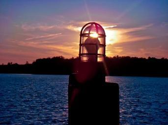 Keywords: twilight river afternoon sun water light lantern lamp coast shore bank