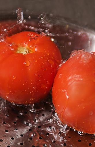 Keywords: Cleaning Cooking Food Fresh Healthy Kitchens Meals Red Ripe Tomatoes Vegetables Washing Water