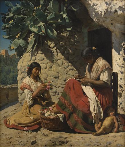 Keywords: Two gypsy women outside their home (1878 painting).jpg Artwork title da To sigøjnerkvinder uden for deres bolig Two Gypsy women outside their cottage Spain 1878 oil canvas cm 156 182 Statens Museum for Kunst Copenhagen http //www smk dk/en/explore-the-art/the-royal-collections/work-in-artsdatabase/view/index/Start/kunstvaerk/to-sigoejnerkvinder-uden-for-deres-bolig/ Statens Museum for Kunst object history credit line accession number KMS1121 Statens Museum for Kunst PD-old-100 Paintings by Peder Severin Krøyer Paintings in Statens Museum for Kunst Roma people in art Portrait paintings of women Females watching in art 1878 paintings |