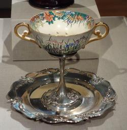 Keywords: Two-handled cup and plate with iris design, Shreve & Company, San Francisco, c. 1910, silver and porcelain - De Young Museum - DSC00724.JPG en Exhibit in the De Young Museum San Francisco California USA This artwork is in the public domain because the artist died more than 70 years ago Photography was permitted in the museum without restriction 2013-11-05 15 51 41 own Daderot other versions cc-zero American ceramics in the De Young Museum Uploaded with UploadWizard American metalwork in the De Young Museum Shreve Co |