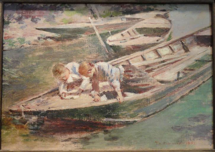 Keywords: Two in a Boat, Theodore Robinson, 1891, oil on canvas adhered to cardboard - Phillips Collection - DSC04854.JPG en Two in a Boat Theodore Robinson 1891 oil on canvas adhered to cardboard - Phillips Collection Washington DC USA This artwork is in the public domain because the artist died more than 70 years ago Photography was permitted in the museum without restriction 2013-02-01 15 45 34 own Daderot cc-zero Uploaded with UploadWizard Two in a Boat by Theodore Robinson |