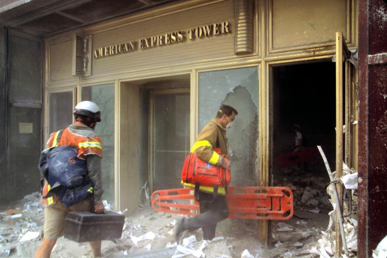 | Keywords: [Two rescue workers entering the American Express Tower following September 11th terrorist attack on World Trade Center, New York City]. Sept. 11, 2001. Image. Retrieved from the Library of Congress, www.loc.gov/pictures/item/2002719357/. (Accessed September 03, 2016.) Call Number: LC-A05- C18 [item] [P&amp;P] Forms part of: Collection of unattributed photographs ... The 250 color slides made at the World Trade Towers in New York City on September 11, 2001, received from the New York District Attorney's office from an unattributed photographer, are in the public domain. Privacy and publicity rights may apply. These slides were received from the New York District Attorney's office with the photographer relinquishing any and all copyright and right of attribution. Therefore, the photographer's name will not be associated with these photographs. [Two rescue workers entering the American Express Tower following September 11th terrorist attack on World Trade Center, New York City]. Sept. 11, 2001. Image. Retrieved from the Library of Congress, www.loc.gov/pictures/item/2002719357/. (Accessed September 03, 2016.) Call Number: LC-A05- C18 [item] [P&P] Forms part of: Collection of unattributed photographs ... The 250 color slides made at the World Trade Towers in New York City on September 11, 2001, received from the New York District Attorney's office from an unattributed photographer, are in the public domain. Privacy and publicity rights may apply. These slides were received from the New York District Attorney's office with the photographer relinquishing any and all copyright and right of attribution. Therefore, the photographer's name will not be associated with these photographs. [Two rescue workers entering the American Express Tower following September 11th terrorist attack on World Trade Center, New York City]. Sept. 11, 2001. Image. Retrieved from the Library of Congress, <a href="http://www.loc.gov/pictures/item/2002719357/" rel="nofollow">www.loc.gov/pictures/item/2002719357/</a>. (Accessed September 03, 2016.)