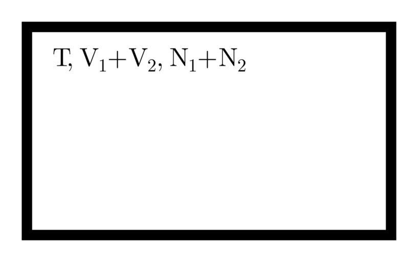 Keywords: Two systems after the elimination of a boundary.svg en Diagram showing the resulting thermodynamic system after the elimination of a boundary between two previous thermodynamic systems which had different volumes and numbers of particles es Diagrama que muestra el sistema termodinámico resultante tras la eliminación de la ligadura entre dos sistemas termodinámicos previos los cuales tenían diferentes números de partículas y volúmenes 2011-11-10 own Daniel Molina García This diagram was done with the free software GLE It was generated with this code systems_width 14 systems_height 8 systems_separator systems_width/10 4 image_borders 2 size systems_width+image_borders systems_height+image_borders Let's draw the borders from 1 1 amove 1 1 set lwidth 4 box systems_width systems_height Let's write the thermodynamic variables amove 1 1 Place it in the origin set hei 1 rmove 1 systems_height-1 5 text T V_1+ V_2 N_1+ N_2 cc-zero Uploaded with UploadWizard Thermodynamic systems |