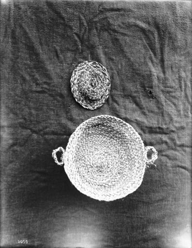 | Keywords: wikimedia commons wikimediacommons images_from_usc_digital_library_uploaded_by_fæ imagesfromuscdigitallibraryuploadedbyfæ california_historical_society_collection,_1860-1960 californiahistoricalsocietycollection18601960 glass_plate_negatives glassplatenegatives native_american_baskets nativeamericanbaskets photographs_by_george_wharton_james photographsbygeorgewhartonjames blackandwhite monochrome texture round black and white Wikimedia Commons image page Description Description ''Two unidentified Indian baskets on display, ca.1900 Photograph of a collection of 2 unidentified Indian baskets on display, photographed ca.1900. They are displayed against a dark cloth. They are both round and shallow like bowls. The larger of the two, at bottom, has two round handles. Photographer: James, George Wharton Filename: CHS-3959 Coverage date: circa 1900 Part of collection: California Historical Society Collection, 1860-1960 Type: images; physical objects Part of subcollection: Title Insurance and Trust, and C.C. Pierce Photography Collection, 1860-1960 Repository name: USC Libraries Special Collections Format: glass plate negatives Archival file: chs_Volume96/CHS-3959.tiff Repository address: Doheny Memorial Library, Los Angeles, CA 90089-0189 Geographic subject (country): USA Format (aacr2): 1 photograph : glass photonegative, b&amp;w ; 22 x 17 cm. Rights: Digitally reproduced by the USC Digital Library; From the California Historical Society Collection at the University of Southern California Call number: CHS-3959 Accession number: 3959 Repository email: specol@usc.edu Contributing entity: California Historical Society Date created: circa 1900 Publisher (of the digital version): University of Southern California. Libraries Format (aat): photographs Legacy record ID: chs-m16491 Access conditions: Send requests to address or e-mail given. Phone (213) 821-2366; fax (213) 740-2343. Subject (lcsh): Indians of North America; Indians of North America -- Industries; Baskets; Indians of North America -- Basket making Subject: Indians -- Arts and crafts -- Basketry; Indian Basketry Date circa 1900 (date created) Author James, George Wharton Source http //digitallibrary.usc.edu/cdm/ref/collection/p15799coll65/id/16429 }} License {{PD-old-70-1923}} Images from USC Digital Library uploaded by Fæ California Historical Society Collection, 1860-1960 Glass plate negatives Native American baskets Photographs by George Wharton James Wikimedia Commons image page Description Description ''Two unidentified Indian baskets on display, ca.1900 Photograph of a collection of 2 unidentified Indian baskets on display, photographed ca.1900. They are displayed against a dark cloth. They are both round and shallow like bowls. The larger of the two, at bottom, has two round handles. Photographer: James, George Wharton Filename: CHS-3959 Coverage date: circa 1900 Part of collection: California Historical Society Collection, 1860-1960 Type: images; physical objects Part of subcollection: Title Insurance and Trust, and C.C. Pierce Photography Collection, 1860-1960 Repository name: USC Libraries Special Collections Format: glass plate negatives Archival file: chs_Volume96/CHS-3959.tiff Repository address: Doheny Memorial Library, Los Angeles, CA 90089-0189 Geographic subject (country): USA Format (aacr2): 1 photograph : glass photonegative, b&w ; 22 x 17 cm. Rights: Digitally reproduced by the USC Digital Library; From the California Historical Society Collection at the University of Southern California Call number: CHS-3959 Accession number: 3959 Repository email: specol@usc.edu Contributing entity: California Historical Society Date created: circa 1900 Publisher (of the digital version): University of Southern California. Libraries Format (aat): photographs Legacy record ID: chs-m16491 Access conditions: Send requests to address or e-mail given. Phone (213) 821-2366; fax (213) 740-2343. Subject (lcsh): Indians of North America; Indians of North America -- Industries; Baskets; Indians of North America -- Basket making Subject: Indians -- Arts and crafts -- Basketry; Indian Basketry Date circa 1900 (date created) Author James, George Wharton Source http //digitallibrary.usc.edu/cdm/ref/collection/p15799coll65/id/16429 }} License {{PD-old-70-1923}} Images from USC Digital Library uploaded by Fæ California Historical Society Collection, 1860-1960 Glass plate negatives Native American baskets Photographs by George Wharton James <b> <a href="http://commons.wikimedia.org/wiki/File:Two_unidentified_Indian_baskets_on_display,_ca.1900_(CHS-3959).jpg" rel="nofollow">Wikimedia Commons image page</a></b>