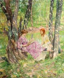 MAKE A MEME View Large Image ...Two Women in a Garden' by Francis Coates Jones.jpg en Two Women in a Garden by Francis Coates Jones oil on canvas 36 x 29 75 inches Shannon's Fine Art Auctioneers Milford Connecticut Francis Coates Jones PD-old-auto 1932 DEFAULTSORT Jones ...