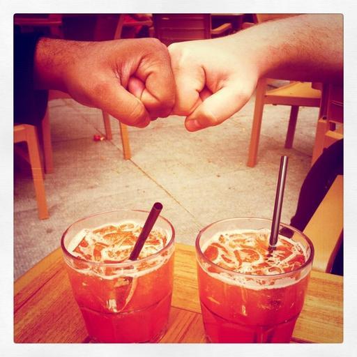 MAKE A MEME View Large Image TwoLaytons.jpg en Two mixed drinks known as 'Layton's and a fist bump in the background http //instagr am/p/K__gF/ andrewmcyntire 2011-08-22 Personal Photograph Fist bumps Proximal phalanges of the hand