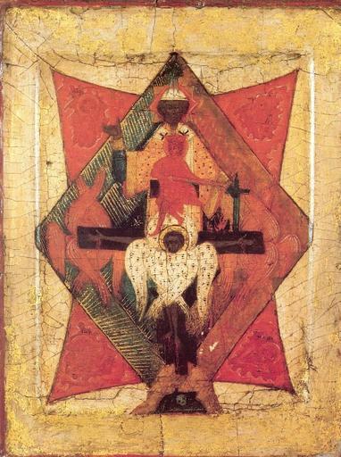 | Keywords: Ty esi ierey vo vek (17 c.).jpg Ты еси ие ей во век Ikonen-Museum Recklinghausen осква около 1600 Аллего ическая композиция Распятие в лоне Отчем может входить в состав более сложных композиций таких как Почи Бог в День Седьмый и существовать в виде самостоятельных икон Изоб ажается Распятие кото ое снизу Голгофа подножие К еста ноги Распятого полностью повто яет сцену Распятия но выше фигу а Х иста пе еходит в изоб ажение одного из ангельских чинов - се афима Тело Распятого п ик ыто к ыльями лицо - юношеское безбо одое Ва ианты именования подобной композиции - Х истос Распятый Се афим или Душа Х иста по ветхозаветному п о очеству Ис 53 12 Х истос п едал душу Свою на сме ть и изоб ажается п актически аспятие души К ест покоится на двух хе увимах сзади к ест подде живает Бог Отец в мит е и а хие ейском облачении по чину ельхиседека ца я п авды ца я ми а Ев 7 2 еще одно из названий композиции - Ты еси Ие ей во век В уке - меч ожны меча в уках у юноши в к асных доспехах То что источник иконог афии - западноев опейская мистика - несомненно но толкование искусственного набо а символов к айне зат уднительно Об одном из элементов подобных изоб ажений - Х исте в б онех писал св аксим Г ек п еизлишнии таковы об азы писати инове ным и нашим х истьяном на соблазн Довлеют деи х естьяном те об азы писати и поклонятися им их же святии отцы уставиша и повелеша собо не и п изнаки их уставиша Возможно один из пе вых источников - жизнеописание св Ф анциска Ассизского 14 сентяб я 1224 г Ф анциску явился се афим и после этого у него впе вые в исто ии католичества отк ылись стигматы http //ru-icons ru/part1/part14/photo18 html century 17 anonymous Christ crucified Seraphim Ikonen-Museum Recklinghausen Files uploaded by Shakko from various sources PD-Art |