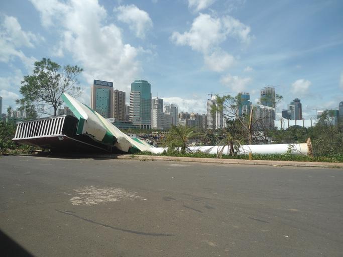 | Keywords: Typhoon Rammasun (2014) in Haikou - by Century Bridge.JPG en Typhoon Rammasun 2014 in Haikou Hainan China Advertising sign blown down at the east end of the lagoon at the east side of Evergreen park Note the broken windows of the buildings in the background on Binhai Road 2014-07-18 21 15 23 own Anna Frodesiak cc-zero Typhoon Rammasun 2014 in Haikou Files by User Anna Frodesiak Uploaded with UploadWizard | ||||