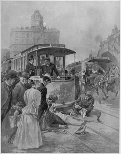| Keywords: "A Typical Cable 'Accident' on Broadway.", ca. 08-29-1895 - NARA - 513353.jpg Scope and content A horse-drawn ambulance arrives on the scene where a man lies in the street after being hit by a cable car From Leslie's Weekly Aug 29 1895 Background left Union Dime Savings Bank Background right 6th Avenue El General notes 513353 Local identifier 30-N-49-1767 Department of Commerce Bureau of Public Roads 08/20/1949 - 04/01/1967 NARA-Place New York New York state United States North and Central America inhabited place 4191644 40 7 -74 <br /> United States North and Central America nation 4199172 38 -98 <br /> Still Picture Records Section Special Media Archives Services Division NWCS-S National Archives at College Park 8601 Adelphi Road College Park MD 20740-6001 ca 1895 08 29 Record group Record Group 30 Records of the Bureau of Public Roads 1892 - 1972 Record group ARC 359 Historical Photograph File of the Bureau of Public Roads compiled 1896 - 1963 Series ARC 513325 File unit File unit ARC Variant control numbers NAIL Control Number NWDNS-30-N-49-1767<br /> Select List Identifier AMCITY 99 Other versions <gallery> File A_Typical_Cable_'Accident'_on_Broadway _ca _08-29-1895_-_NARA_-_513353 tif tif File A_Typical_Cable_'Accident'_on_Broadway _ca _08-29-1895_-_NARA_-_513353 jpg jpg </gallery> 40 44 57 N 73 59 17 W heading SW NARA-cooperation PD-USGov Streetcar lines in New York City Tram accidents Trams in art 1895 in New York City New York City in art Police officers in art Fashion in 1895 Ambulances in New York Ambulances in the 1890s Ambulances in art Herald Square Number 163 on trams Cable cars railway in the United States Horse-drawn ambulances IRT Sixth Avenue Line ImageNote 1 887 1658 556 275 2359 3000 2 163 Brodway ImageNoteEnd 1 |