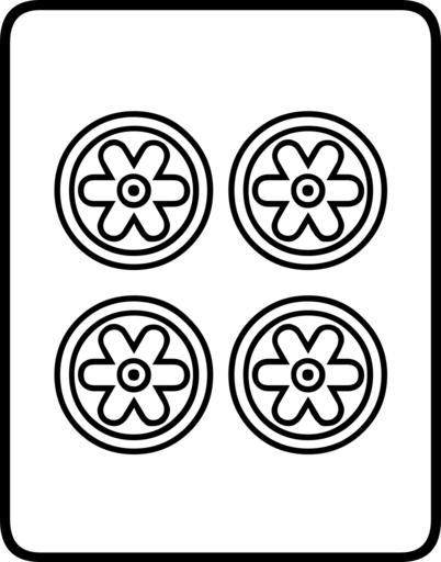 Keywords: U+1F01C MJ4bing.svg ðŸ U+1F01C MAHJONG TILE FOUR OF CIRCLES own 13 35 15 July 2010 UTC Shizhao MJ4bing svg inkscape Unicode 1F000-1F02F Mahjong Tiles from http //savannah gnu org/projects/freefont/ free serif font GPL