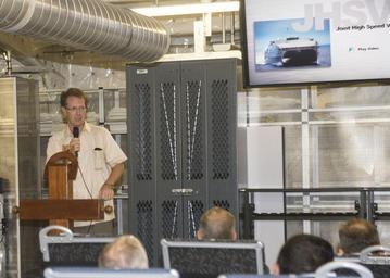 Keywords: U.S. Ambassador to Honduras James D. Nealon delivers remarks to U.S. and Honduran government and military officials during a tour of the joint high speed vessel USNS Spearhead (JHSV 1) in Puerto Castilla 140901-N-QY430-154.jpg en U S Ambassador to Honduras James D Nealon delivers remarks to U S and Honduran government and military officials during a tour of the joint high speed vessel USNS Spearhead JHSV 1 in Puerto Castilla Honduras Sept 1 2014 as part of Southern Partnership Station SPS 2014 SPS is an annual deployment of U S ships to the U S Southern Command's area of responsibility in the Caribbean and Latin America The exercise involves information sharing with navies coast guards and civilian services throughout the region 2014-09-01 MC1 Rafael Martie http //www defenseimagery mil/imageRetrieve action guid a4f9e1c2fe5240f472680d468b59c53427621d51 t 2 Public domain photograph from defenseimagery mil http //www defenseimagery mil/imagery html guid a4f9e1c2fe5240f472680d468b59c53427621d51 140901-N-QY430-154 2014-09-04 Puerto Castilla PD-USGov-Military-Navy USNS Spearhead JHSV-1 Southern Partnership Station 2014 Images from DoD uploaded by Fæ James D Nealon |
