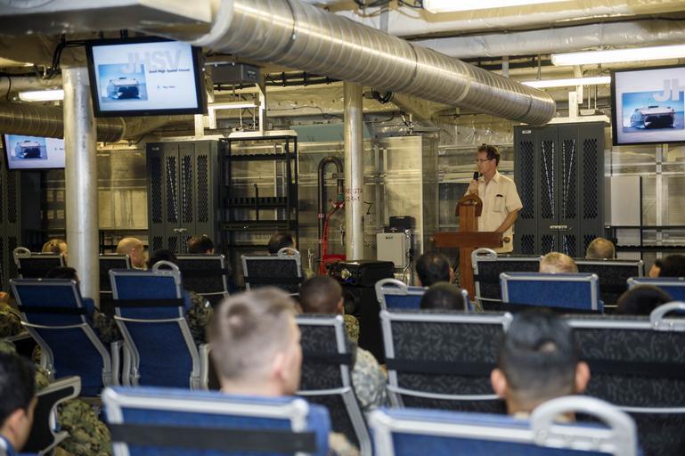 Keywords: U.S. Ambassador to Honduras James D. Nealon delivers remarks to U.S. and Honduran government and military officials during a tour of the joint high speed vessel USNS Spearhead (JHSV 1) in Puerto Castilla 140901-N-XQ474-004.jpg en U S Ambassador to Honduras James D Nealon delivers remarks to U S and Honduran government and military officials during a tour of the joint high speed vessel USNS Spearhead JHSV 1 in Puerto Castilla Honduras Sept 1 2014 as part of Southern Partnership Station SPS 2014 SPS is an annual deployment of U S ships to the U S Southern Command's area of responsibility in the Caribbean and Latin America The exercise involves information sharing with navies coast guards and civilian services throughout the region 2014-09-01 MC3 Andrew Schneider http //www defenseimagery mil/imageRetrieve action guid acc5e97a7e2204909a0fd330414692357de1ccc8 t 2 Public domain photograph from defenseimagery mil http //www defenseimagery mil/imagery html guid acc5e97a7e2204909a0fd330414692357de1ccc8 140901-N-XQ474-004 2014-09-04 Puerto Castilla PD-USGov-Military-Navy USNS Spearhead JHSV-1 Southern Partnership Station 2014 Images from DoD uploaded by Fæ Photographs by Andrew Schneider James D Nealon |