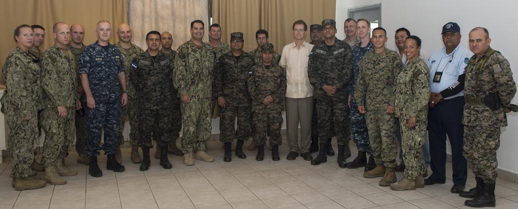 Keywords: U.S. and Honduran military and government officials stand for a photo after a luncheon in Puerto Castilla, Honduras, Sept 140901-N-QY430-632.jpg en U S and Honduran military and government officials stand for a photo after a luncheon in Puerto Castilla Honduras Sept 1 2014 during Southern Partnership Station SPS 2014 SPS is an annual deployment of U S ships to the U S Southern Command's area of responsibility in the Caribbean and Latin America The exercise involves information sharing with navies coast guards and civilian services throughout the region 2014-09-01 MC1 Rafael Martie http //www defenseimagery mil/imageRetrieve action guid cb85a276c49da4f6b2bd0f92b96cc28222cd22b4 t 2 Public domain photograph from defenseimagery mil http //www defenseimagery mil/imagery html guid cb85a276c49da4f6b2bd0f92b96cc28222cd22b4 140901-N-QY430-632 2014-09-04 Puerto Castilla PD-USGov-Military-Navy Southern Partnership Station 2014 Images from DoD uploaded by Fæ |